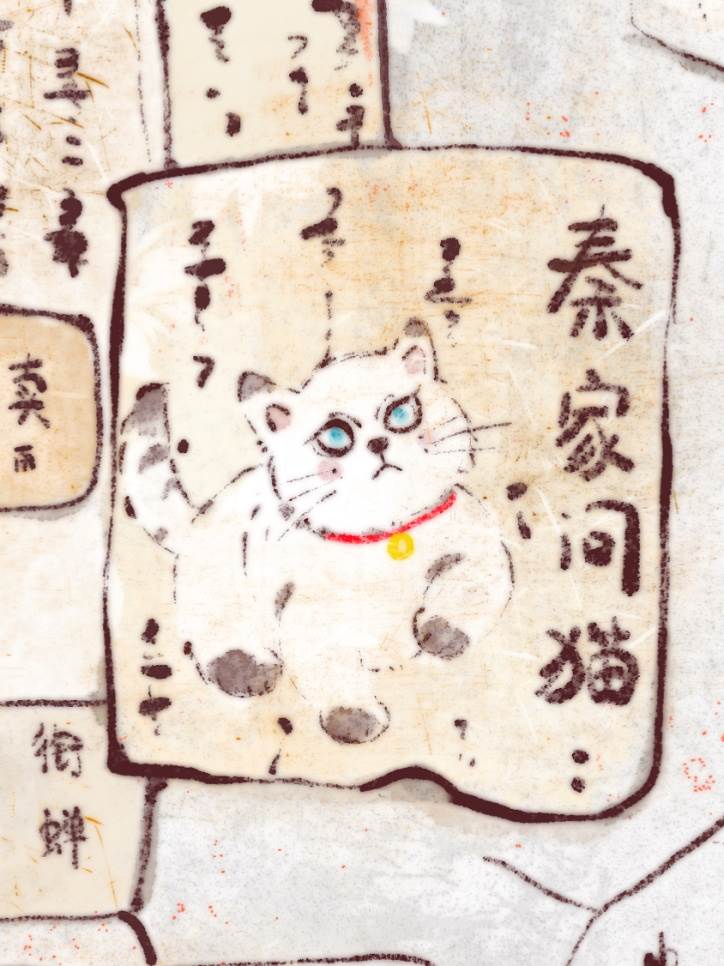 桃花塢柳樹灣南十里秦家,有花奴忘歸,雖是牡貓,但扇了蛋,四肢圓,發白勝,爪沾墨,藍眼,頸下系鈴,不能捉鼠,尋得賞錢面議。